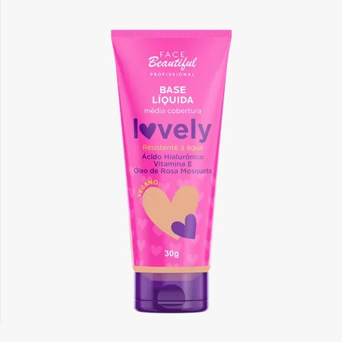 Além disso, a Base Líquida Lovely também conta com os componentes Ácido Hialurônico, Vitamina E, Óleo de Rosa Mosqueta e Pantenol que possuem propriedades hidratantes que auxiliam no cuidado da pele mesmo estando maquiada.