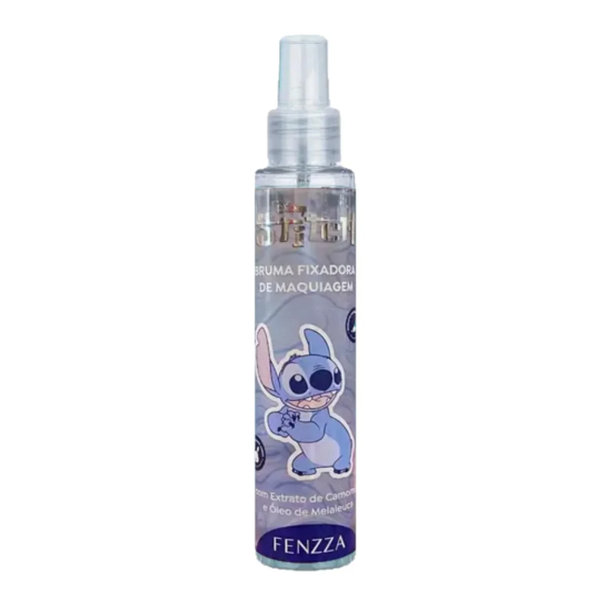 A Bruma Fixadora da Linha Disney Stitch da Fenzza possui Extrato de Camomila e Óleo de Melaleuca, com cheirinho de mirtilo, é testada dermatologicamente e é livre de crueldade animal.