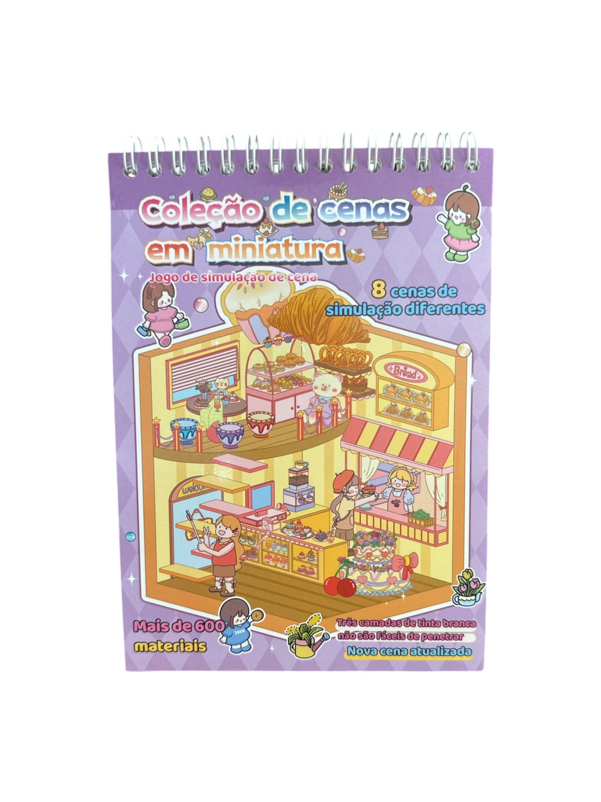 Descubra o prazer de montar seu próprio mini mundo! Nosso Caderno de Cenas em Miniatura permite que você decore padarias, cafés e lojinhas com centenas de adesivos detalhados. Acompanha uma pinça, facilitando a colagem e garantindo um acabamento perfeito nos mínimos detalhes.