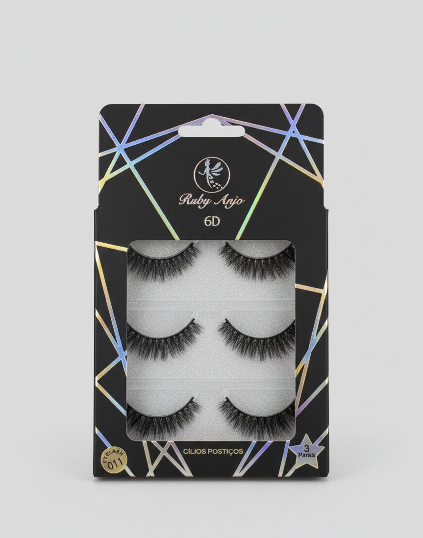 Cartela de Cílios Ruby Anjo | 6D - 011 Preto Com Traços Dourados
