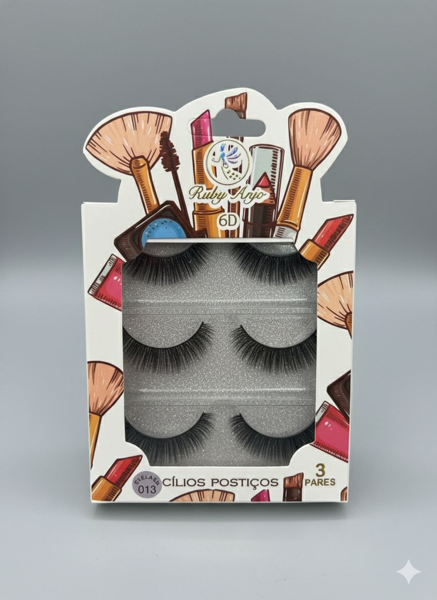 Cartela de Cílios Ruby Anjo | 6D - 013 Branco e Pinceis