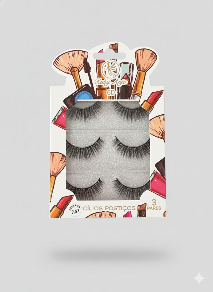 Cartela de Cílios Ruby Anjo | 6D - 041 Branco e pincéis