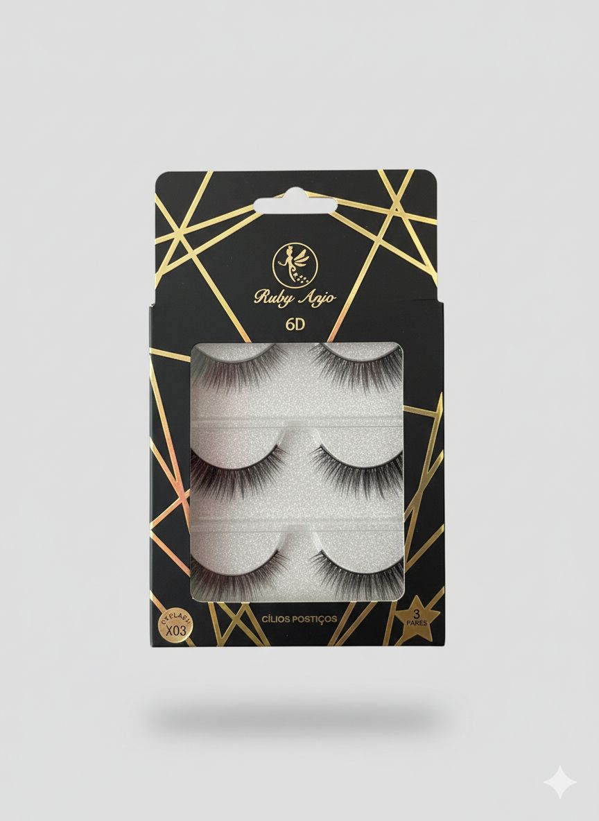 Cartela de Cílios Ruby Anjo | 6D - X03 Preto Com Traços Dourados