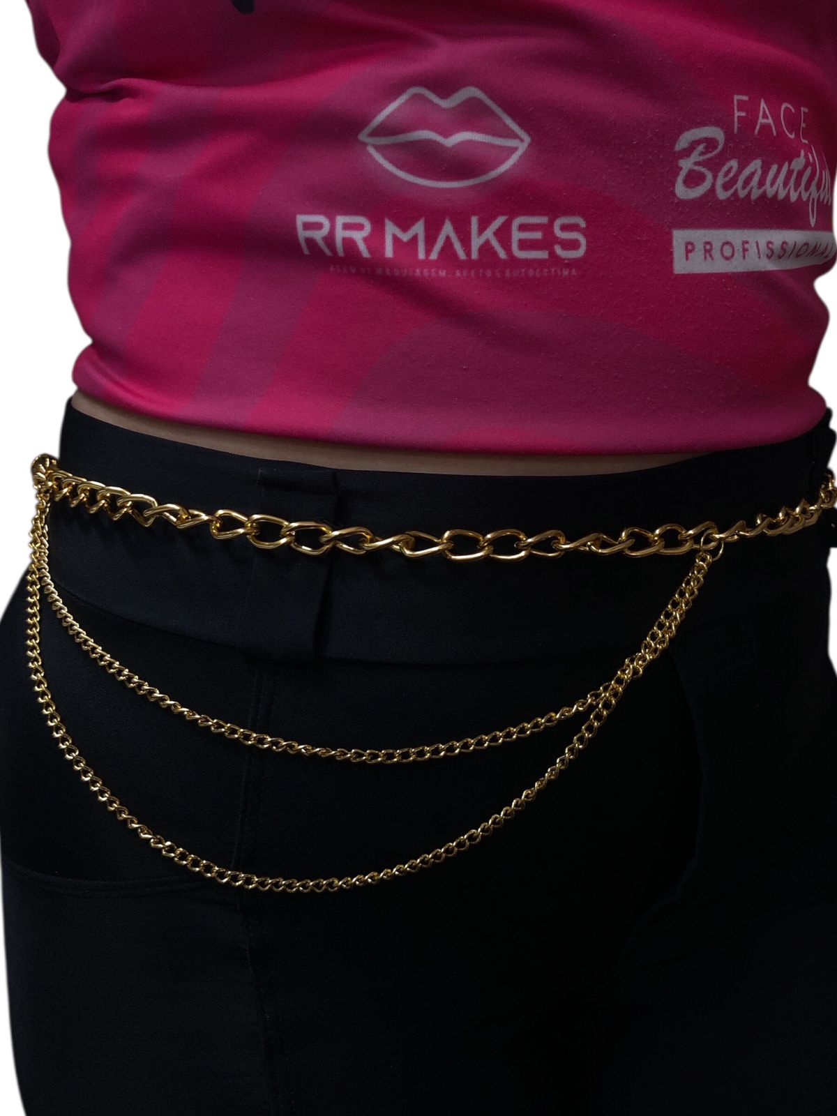 O cinto de corrente é uma peça premium, versátil e elegante. Este estilo de cinto é clássico, ele vai elevar a sua produção, trazendo mais identidade e estilo para a sua composição. Opções de ajustes na corrente.
