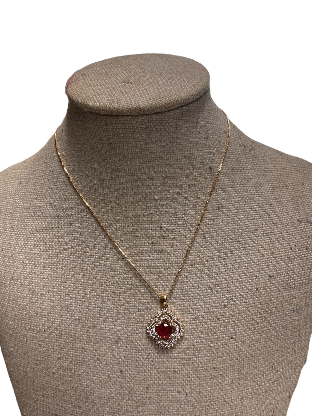 Colar Folheado | Dourado Pedra Vermelho- AK19