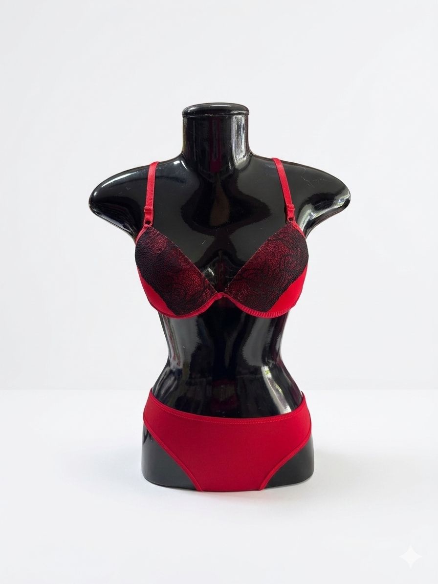 Conjunto de Lingerie - Vermelho com Preto