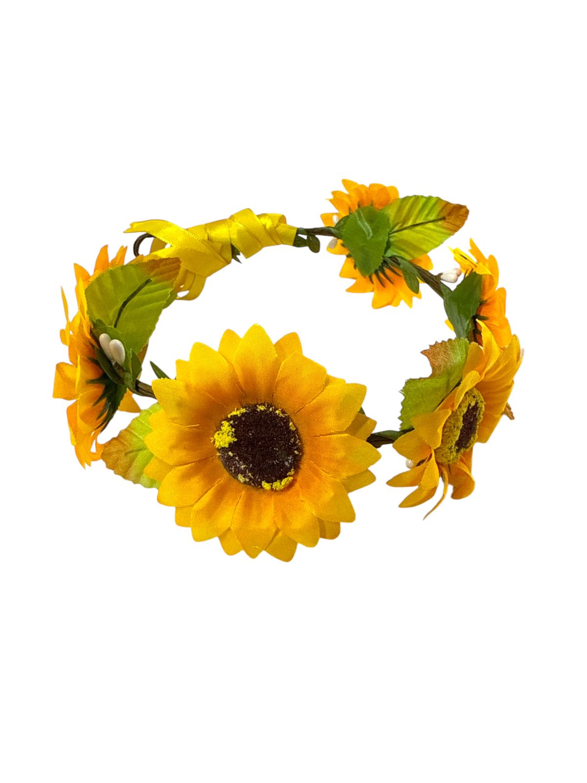 Delicada e cheia de personalidade, essa tiara de girassol é perfeita para quem ama um visual alegre e cheio de vida. Com flores vibrantes em tons de amarelo, folhas verdes realistas e acabamento cuidadoso, ela traz um toque floral que ilumina qualquer produção. Ideal para ensaios fotográficos, festas temáticas, festivais, eventos ao ar livre ou para dar aquele charme especial no look do dia. Leve, confortável e ajustável, combina romantismo, natureza e estilo em uma única peça.