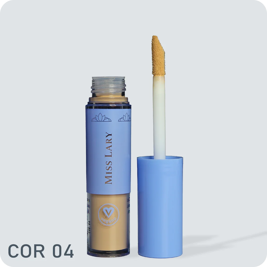 O Corretivo e Contorno Líquido 2 em 1 da Miss Lary possui efeito matte com alta cobertura, deixando sua pele aveludada e sua maquiagem completa.
