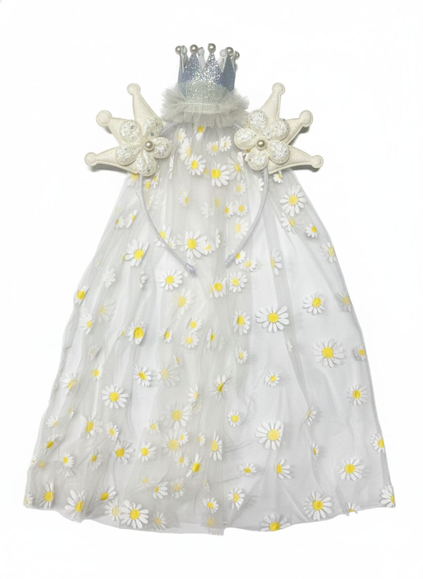 Diadema Coroa e Tule Margaridas - Branco