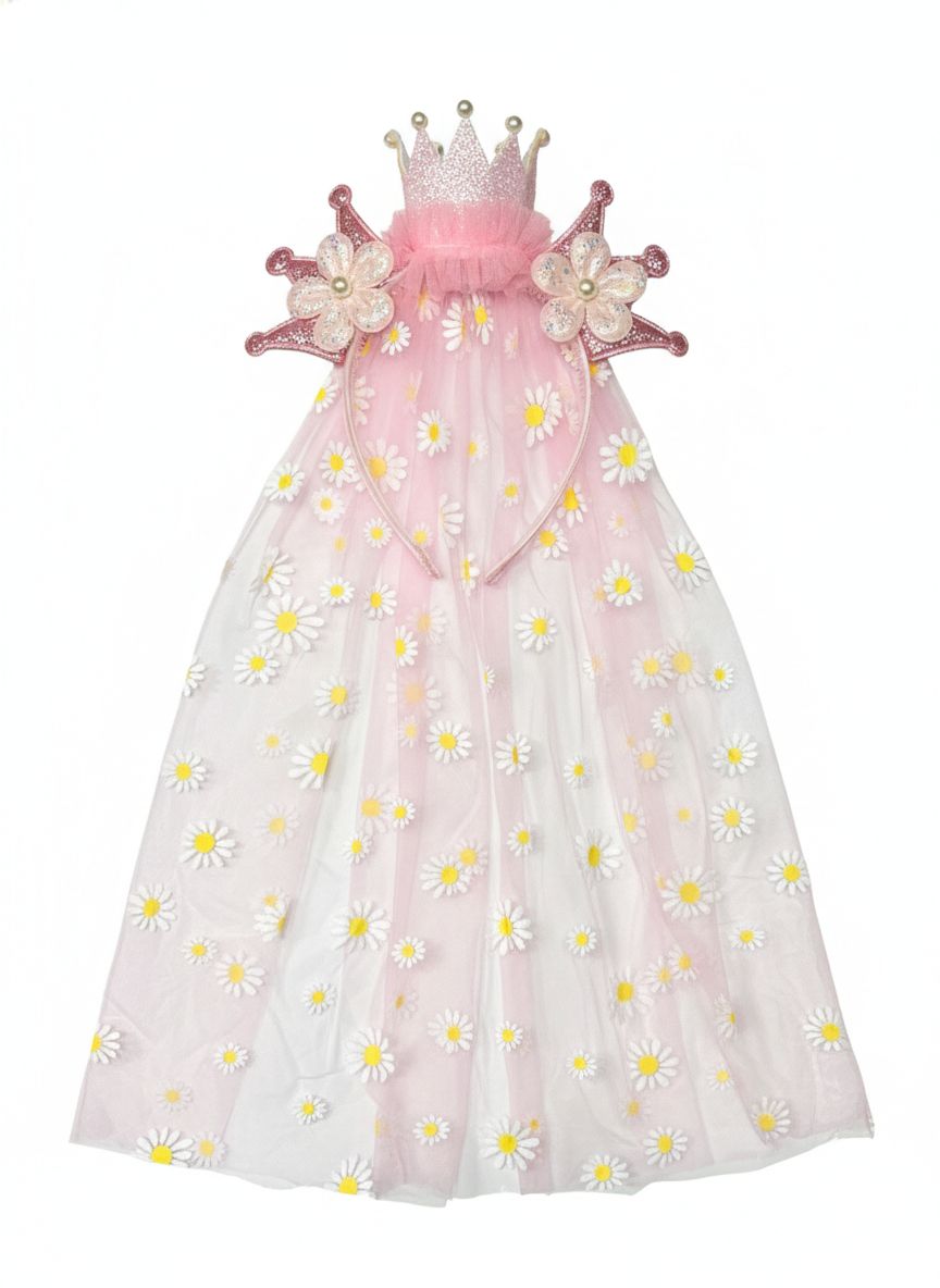 Diadema Coroa e Tule Margaridas - Rosa Bebê