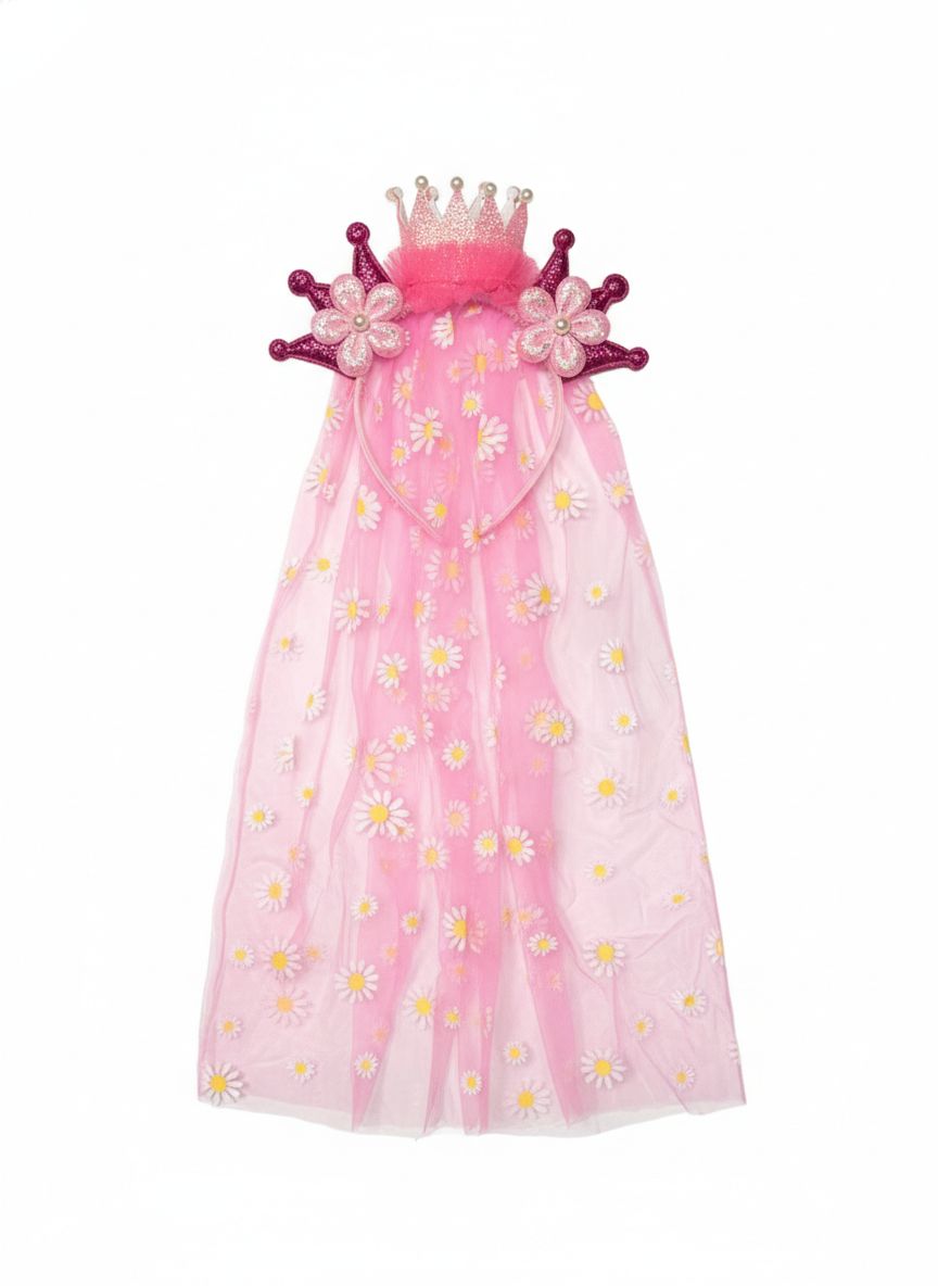 Diadema Coroa e Tule Margaridas - Rosa Pink