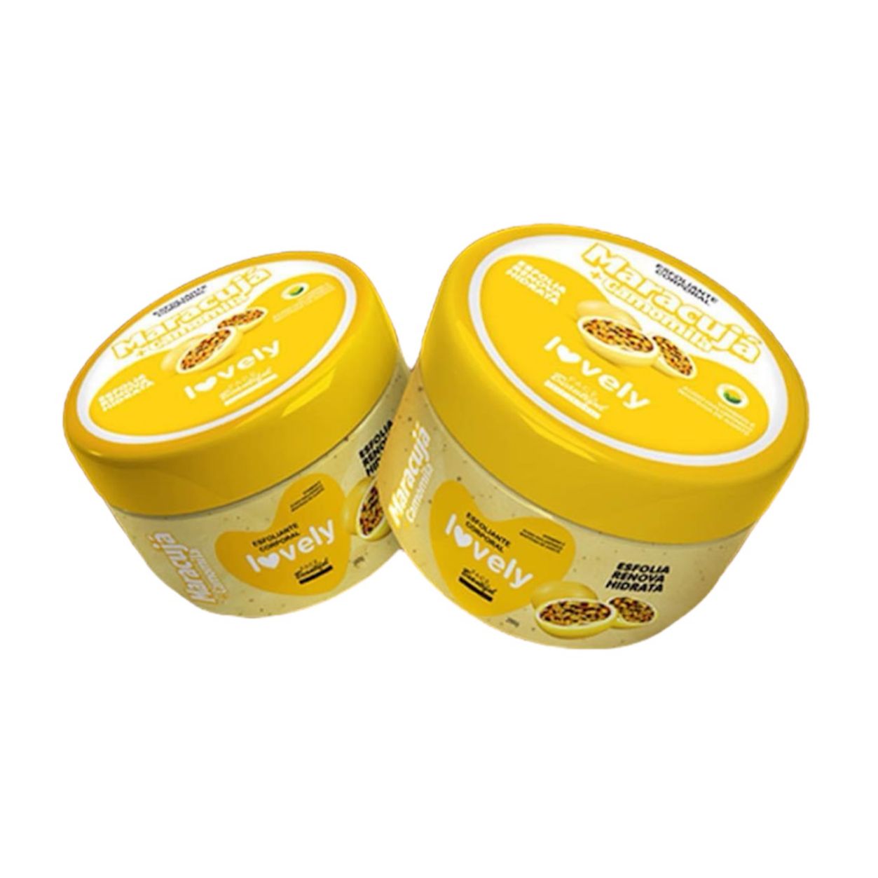 O Esfoliante Corporal de Maracujá possui os componentes Vitamina E, Ácido Hialurônico, Manteiga de Karité e Camomila.
