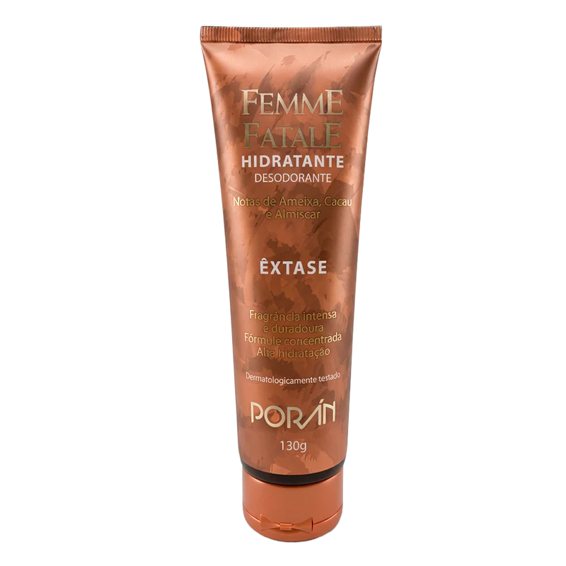 O Hidratante Êxtase da linha Femme Fatale Porán entrega um verdadeiro deleite sensorial, combinando a intensidade das notas com uma textura rica e hidratante. É a escolha perfeita para quem busca destacar sua presença com um toque quente e envolvente.