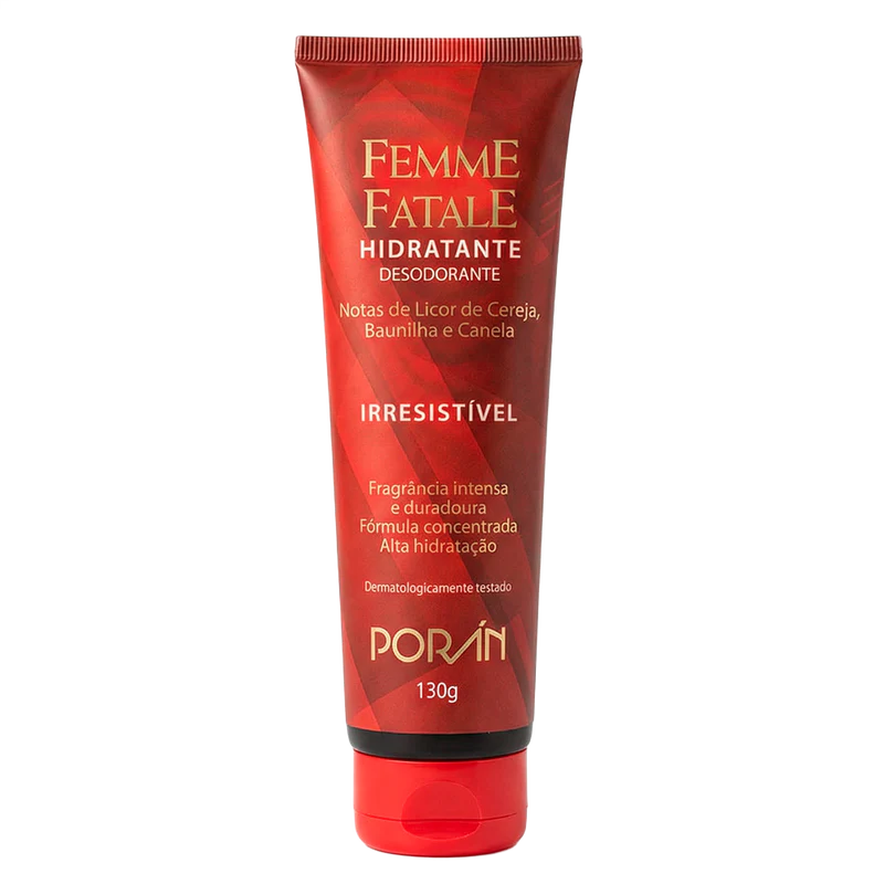 O Hidratante Irresistível da linha Femme Fatale Porán une o poder hidratante de uma fórmula concentrada com uma fragrância marcante e quente, revelando notas ideal para quem busca um cuidado diário que vai além da hidratação, é uma experiência sensorial envolvente e provocante.