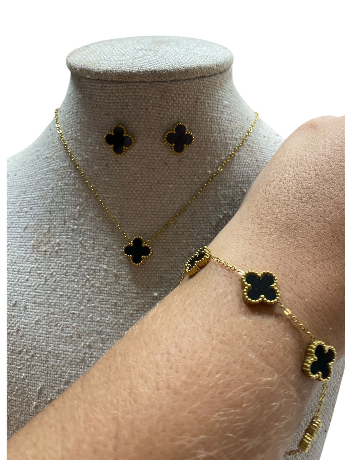 Kit | Colar+Brinco+Pulseira - BR71 | Dourado com Preto