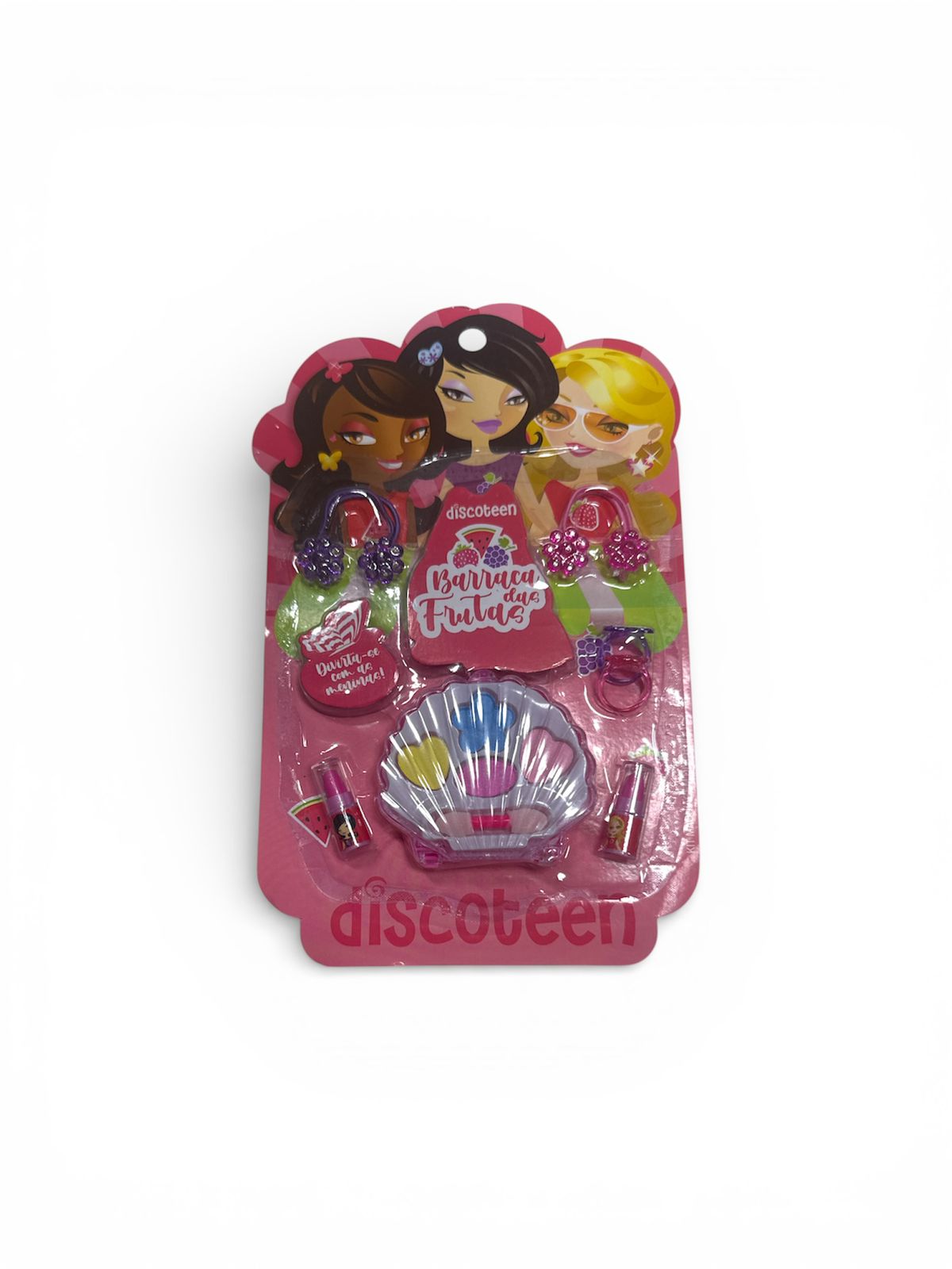 O kit infantil da Discoteen "Barraca das Frutas" (modelo HB103644) é um estojo de maquiagem lúdico e seguro, projetado para crianças que gostam de brincadeiras de faz de conta. O conjunto estimula a criatividade e a diversão, permitindo que as crianças criem looks coloridos e imaginativos.
