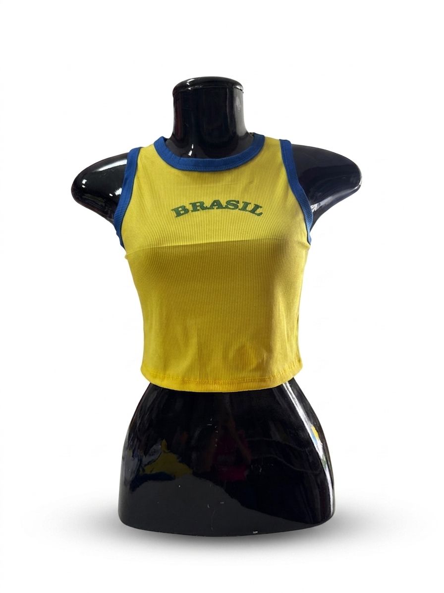 Mostre sua paixão pelo Brasil com muito estilo! Nosso cropped foi pensado para a torcedora que não abre mão de um look impecável na hora do jogo. Leve, fresca e com cores que celebram nossa bandeira, é a escolha certa para vibrar em cada lance com máxima confiança.