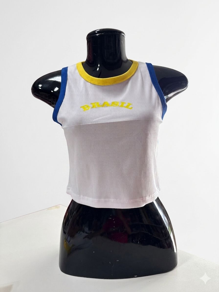 Mostre sua paixão pelo Brasil com muito estilo! Nosso cropped foi pensado para a torcedora que não abre mão de um look impecável na hora do jogo. Leve, fresca e com cores que celebram nossa bandeira, é a escolha certa para vibrar em cada lance com máxima confiança.