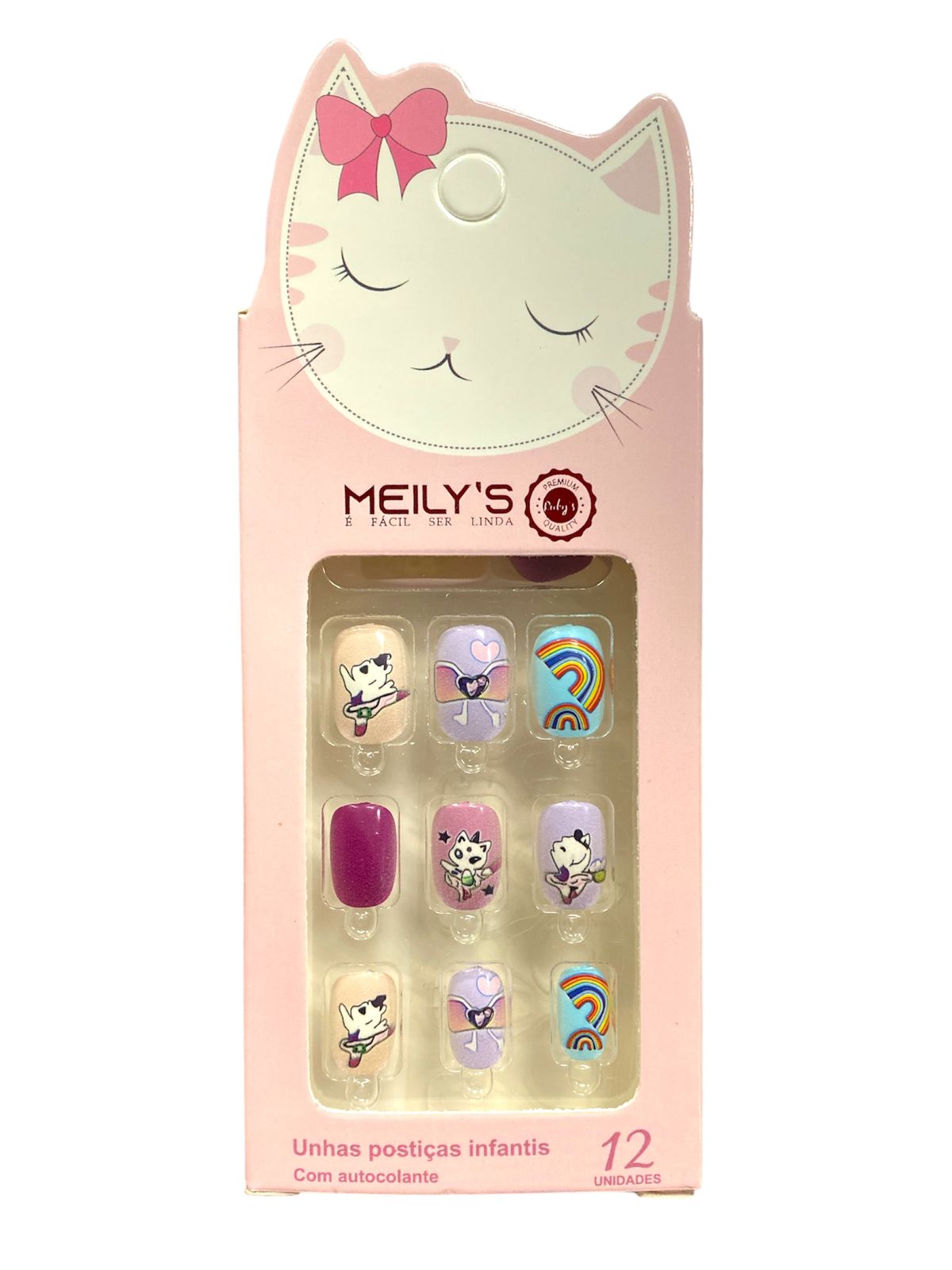 Unha postiça infantil (Arco-íris)- Caixa Rosa | Meily’s